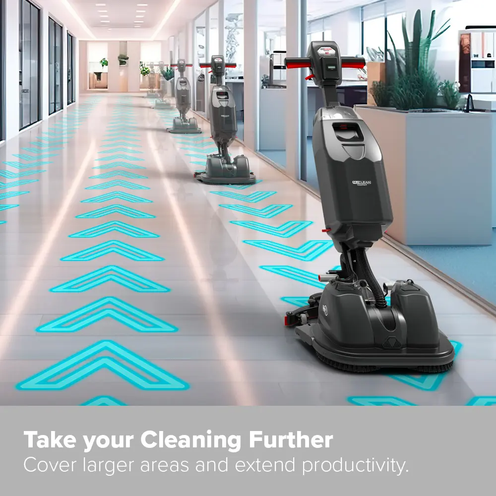 The powered drive technology delivers deep cleaning with agile, lightweight handling, reducing operator strain and effort. Enjoy up to a 48% increase in cleaning coverage, enabling you to clean more space in less time with ease and reduce operator strain.