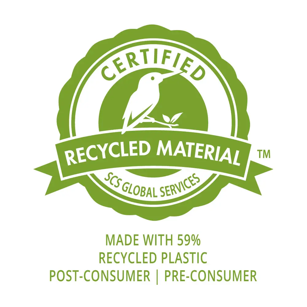 Conforms to SCS Recycled Content Standard V7-0, which ensures with third-party certification that the product uses recycled materials diverted from the waste stream, reducing impacts to the environment. All our products certified by SCS Global Services guarantee a minimum amount of recycled material used. The material quantification and mass-balance calculations are completed on dry-weight basis.